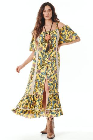 Vestido Midi Ciganinha - Amarelo - Refazenda vestido amarelo ciganinha
