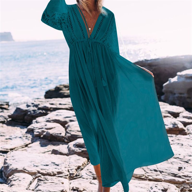 Compre 2019 Branco Rayon Praia Longo Vestido Túnicas Swimwear Kaftan Vestido De Praia Beachwear Cobre Robe De Praia Saida De Praia # Q274 De Amyshop3, $172,49 | Pt.Dhgate.Com kaftan praia longo