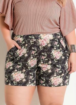 Short com Bolso Funcional Floral Cintura Alta - Quintess short florido feminino cintura alta