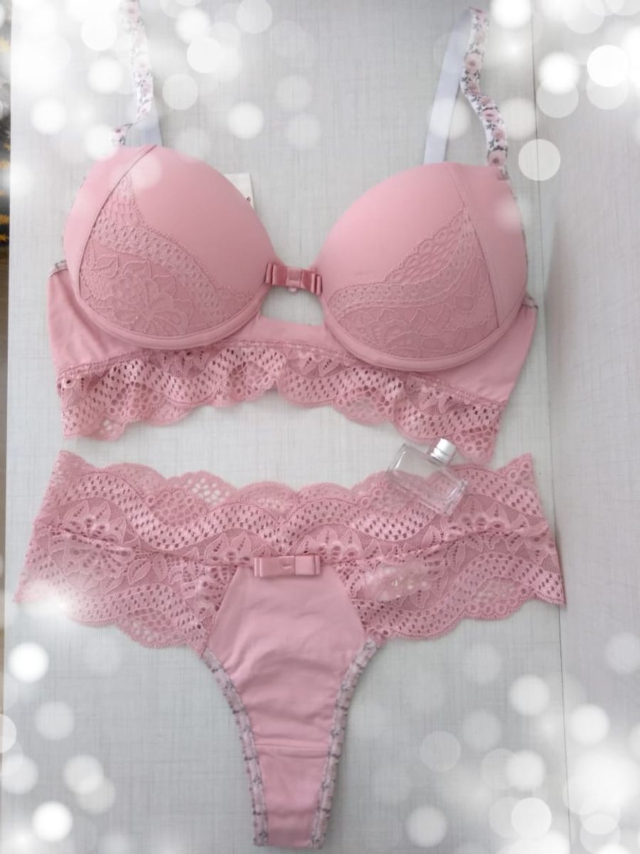 Conjunto de Lingerie em Microfibra Rosa Detalhes em Renda | Lingerie Feminina Joyce Moda Intima Nunca Usado 47898173 | enjoei joyce moda feminina