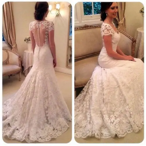Vestido de Noiva Renda Manga Curta Tule Importado - Loja Importado e Nacional vestido de renda de manga curta