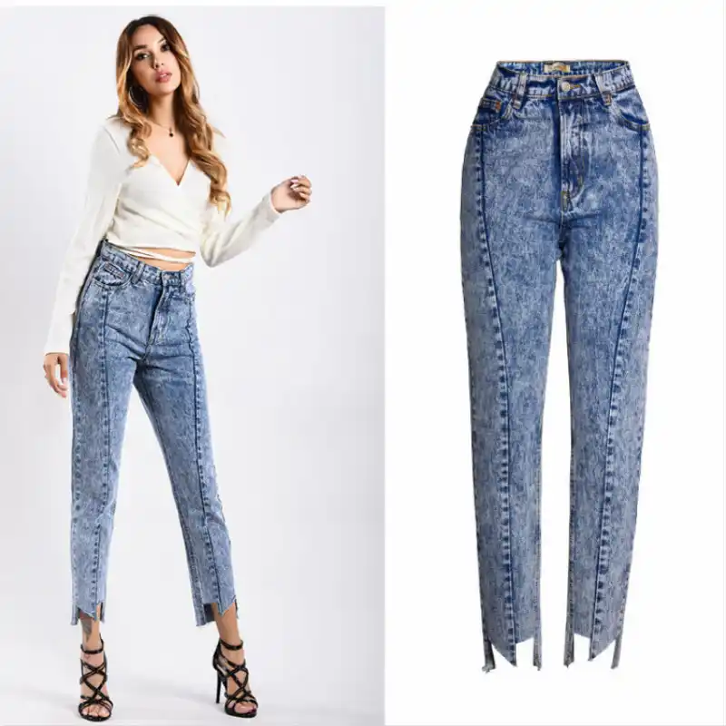 Afrodite Casa Nova Cintura Alta Jeans Famale com Abertura Irregular Mulher Namorado Cortadas Calças Jeans para Mulheres Jeans de Lavagem de Ácido|Jeans| - AliExpress calça jeans com abertura na cintura