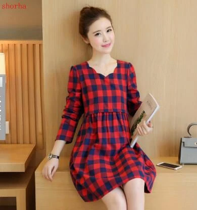 Maternidade Outono Vestido De Algodão Xadrez Roupas De Maternidade Para As Mulheres Grávidas Vestido De Moda De Alta Qualidade Roupas Gravidez W07 vestido xadrez para gravida