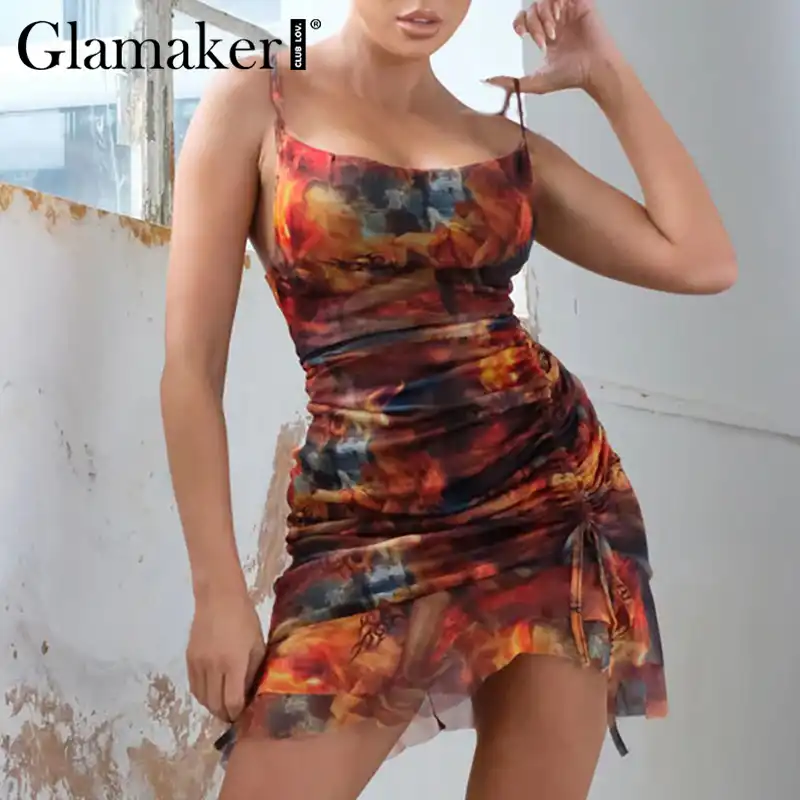 Glamaker vestido curto gola cowl, de malha, sem mangas, elegante, estampa de anjo, vintage, para festa, verão 2020|Vestidos| - AliExpress vestido curto sem manga