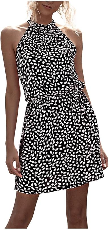 Vestido feminino sem mangas com estampa floral Boho e decote frente única, vestido curto sem mangas, verão e praia, costas nuas, túnica, Preto, Small: Amazon.com.br: Bebês vestido curto sem manga