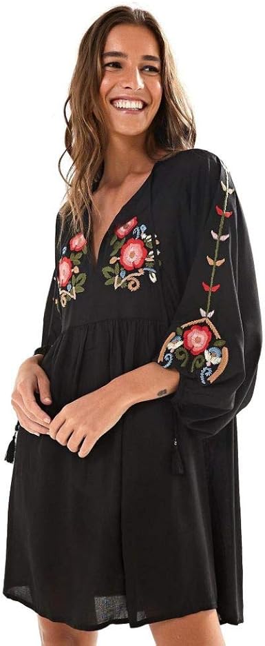 Vestido Bata Bordado Preto - G | Amazon.com.br vestido bata farm