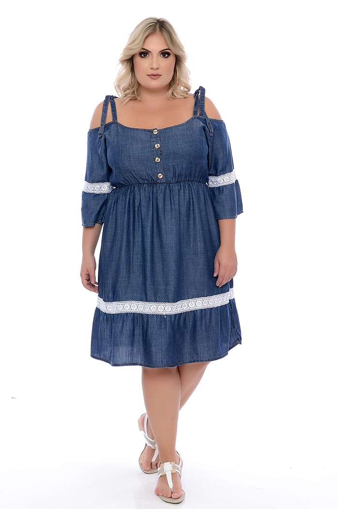 vestido jeans plus size ciganinha