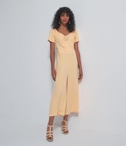Macacão Pantacourt Jeans Liso com Amarração Azul macacão jeans pantacourt renner