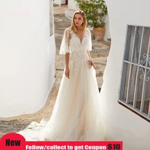 Fotos Vestidos De Noiva Designer De Vestidos De Casamento Boêmio Hippie Lace Kr País Low Back Vestidos De Noiva Manga Morcego Summer Beach Império Cintura 2019 Vestido Longo Do Vintage Vestidos De vestido de noiva manga morcego