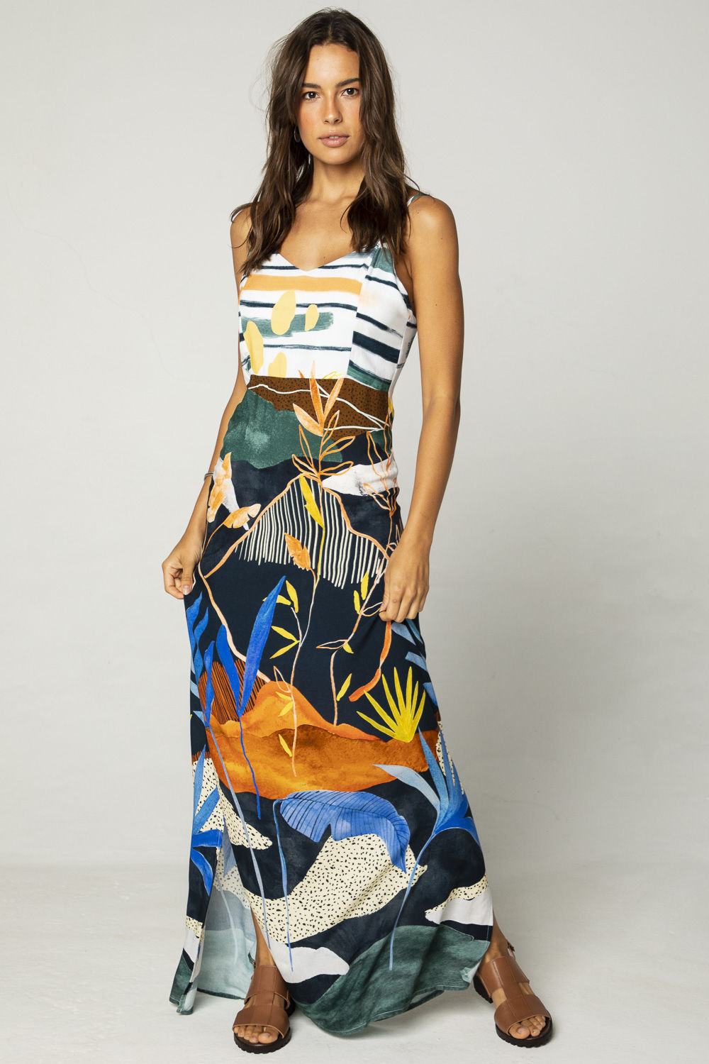 Vestido longo estampado alça - Taipa - Vestidos - Made in Guarda vestido longo colorido