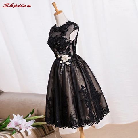 Vestido preto vestido de cocktail curto bordado vestido de festa acima do joelho vestido de baile nupcial banquete de noiva|short cocktails|short cocktail dresscocktail dresses - AliExpress