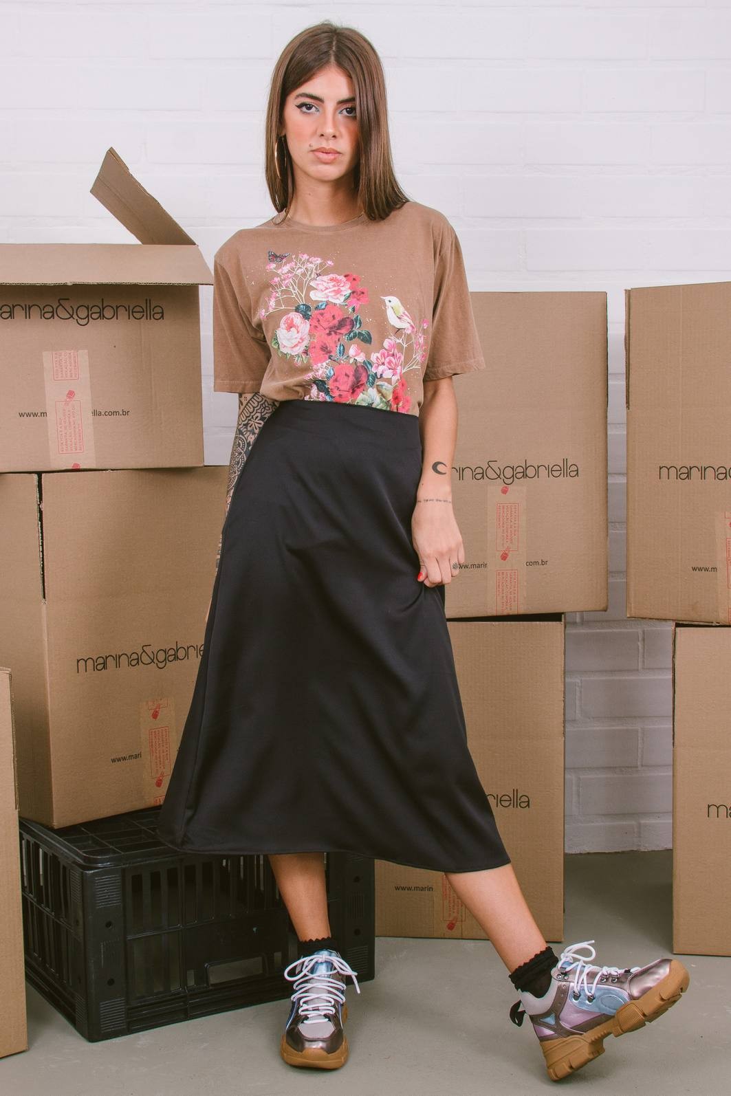 SAIA DE CETIM PRETA Marina\u0026Gabriella - Roupas Femininas - Loja Online Oficial saia midi de cetim preta