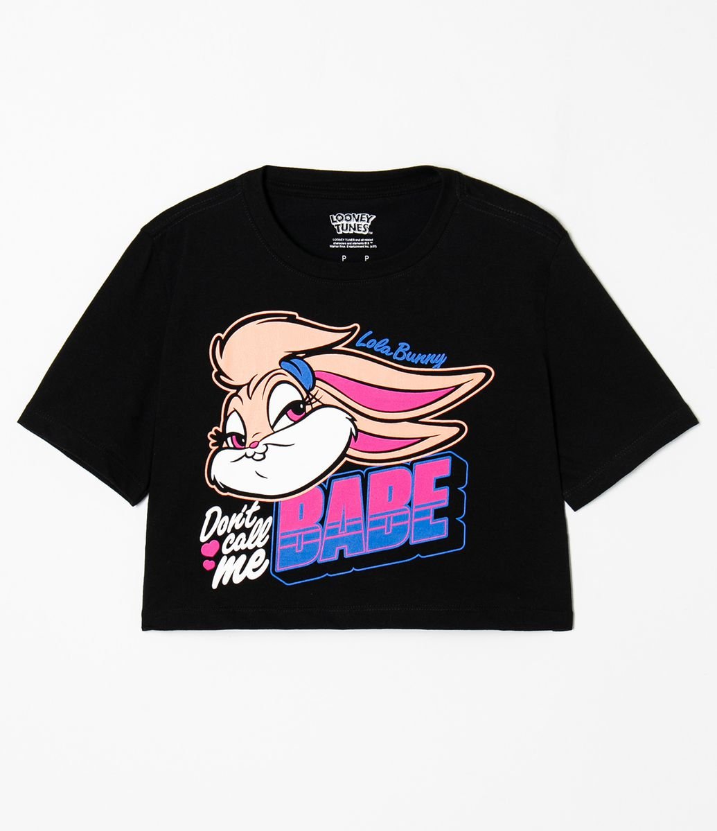 Blusa Cropped Manga Curta Estampa Lola Bunny Don't Call Me Babe Preto love lola roupas