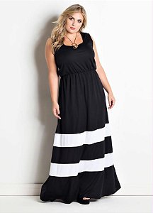Vestido Longo Preto Listras Brancas Plus Size - Mimosa Plus Size vestido longo preto de malha plus size