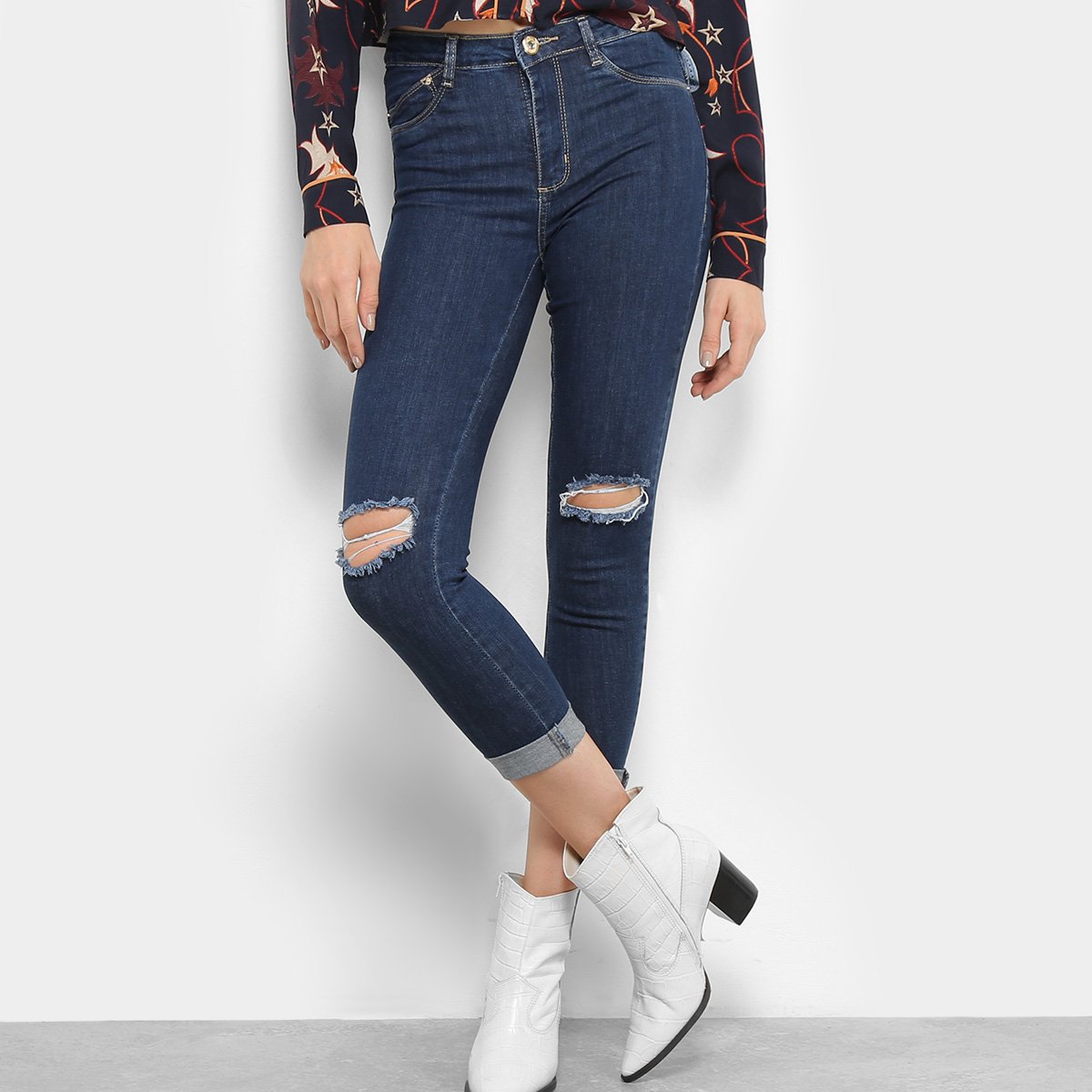 Calça Jeans Skinny Sawary Ragos Joelho Barra Dobrada Cintura Média Feminina | Zattini calça skinning com barra dobrada