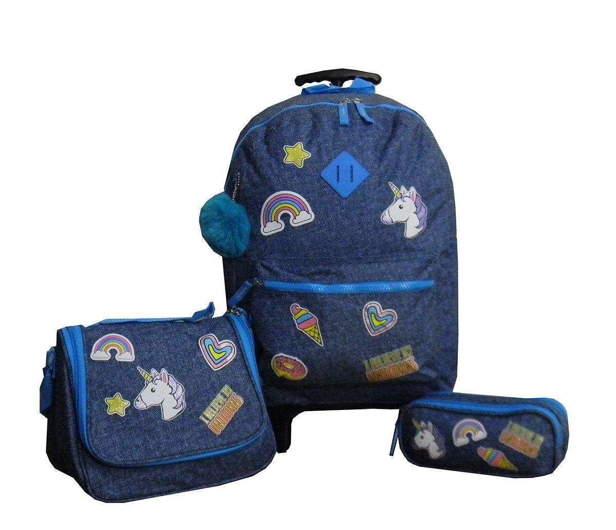 Mochila Escolar Feminina Jeans Lancheira Estojo Unicórnio 91 - Outras Marcas - Mochilas - Magazine Luiza mochila escolar feminina jeans