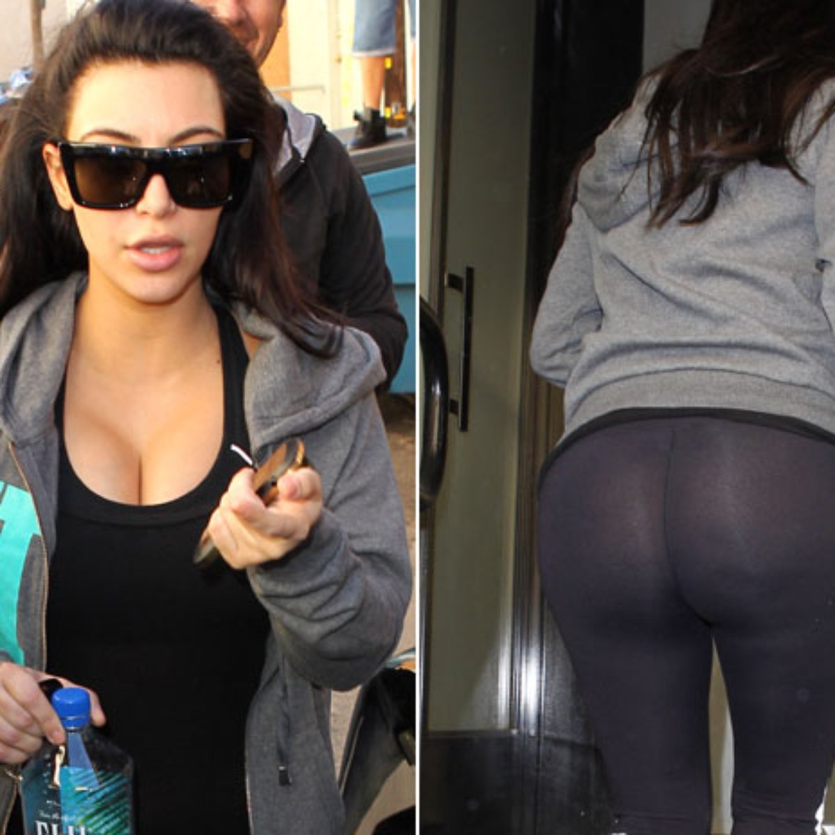 Grávida, Kim Kardashian usa calça transparente na academia roupa transparente na academia