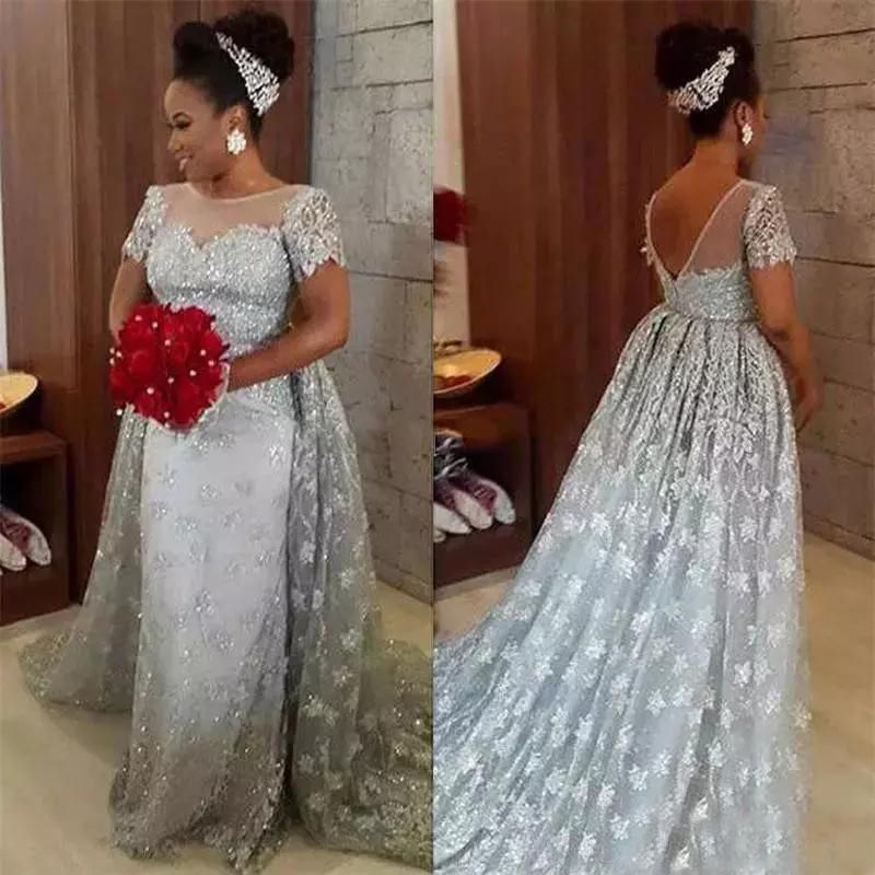 Imagens De Vestidos De Noivas Longo Modesto Plus Size Vestido De Noiva De Prata Vestido De Baile Com Mangas Curtas Jóia Do Pescoço Sexy Sem Encosto Destacável Trem Árabe Vestidos De Noiva vestido de noiva plus size 2 em 1