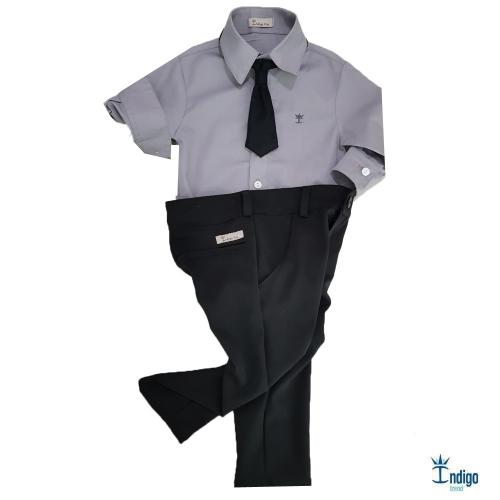 Conjunto Camisa Social Infantil Menino Cinza Bruxelas Lisa Europa Preto Índigo Trend : Conjunto Social Infantil Bebê Menino camisa social preta infantil