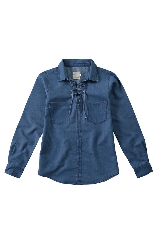 Camisa Jeans Manga Longa 1 Bolso S Lapel - Azul Médio | Calvin Klein - MOBILE - calvinklein