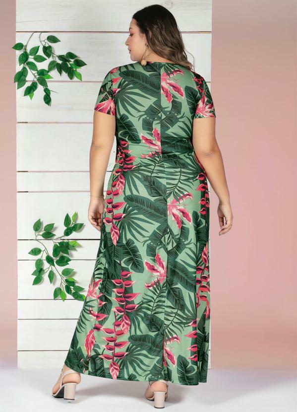 Vestido Longo Transpassado Folhagem Plus Size - Marguerite vestido longo folhagem