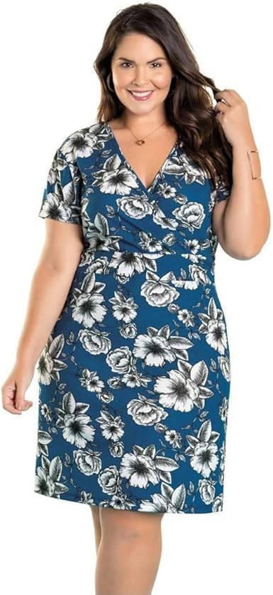Vestido Plus Size Evangelico Festa Midi Florido Feminino (Azul, GG) | Amazon.com.br vestidos plus size floridos