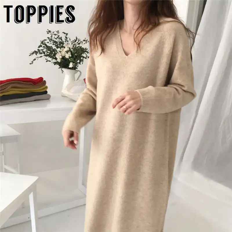 2019 outono inverno de malha midi vestido feminino solto jumper vestido coreano moda manga longa bottoming|Vestidos| - AliExpress vestido midi inverno 2019