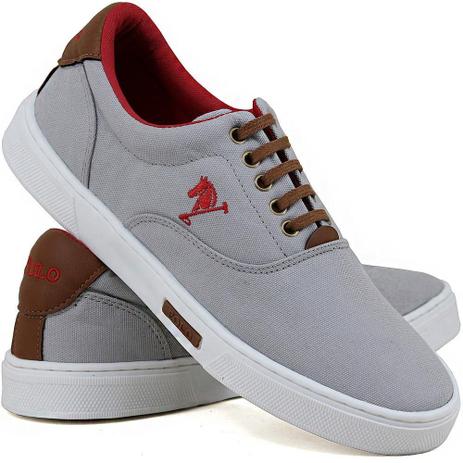 Tênis Masculino Polo Joy Casual Em Lona Cinza com Preto | Prime Store Calçados tênis masculino polo joy casual em lona