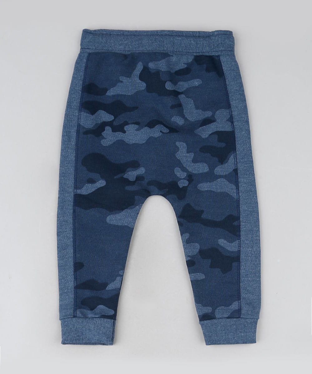 Calça de Moletom Infantil Saruel Estampada Camuflada Azul Marinho - cea calça saruel camuflada