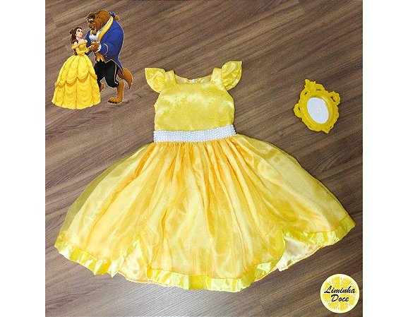 Vestido Amarelo Bela e a Fera - KIBELLABABY vestido da bela ea fera infantil