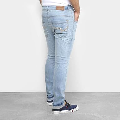 Calça Jeans Skinny Delave Rasgados Pespontos Masculina - Azul Claro - 38 | Amazon.com.br jeans delave masculino