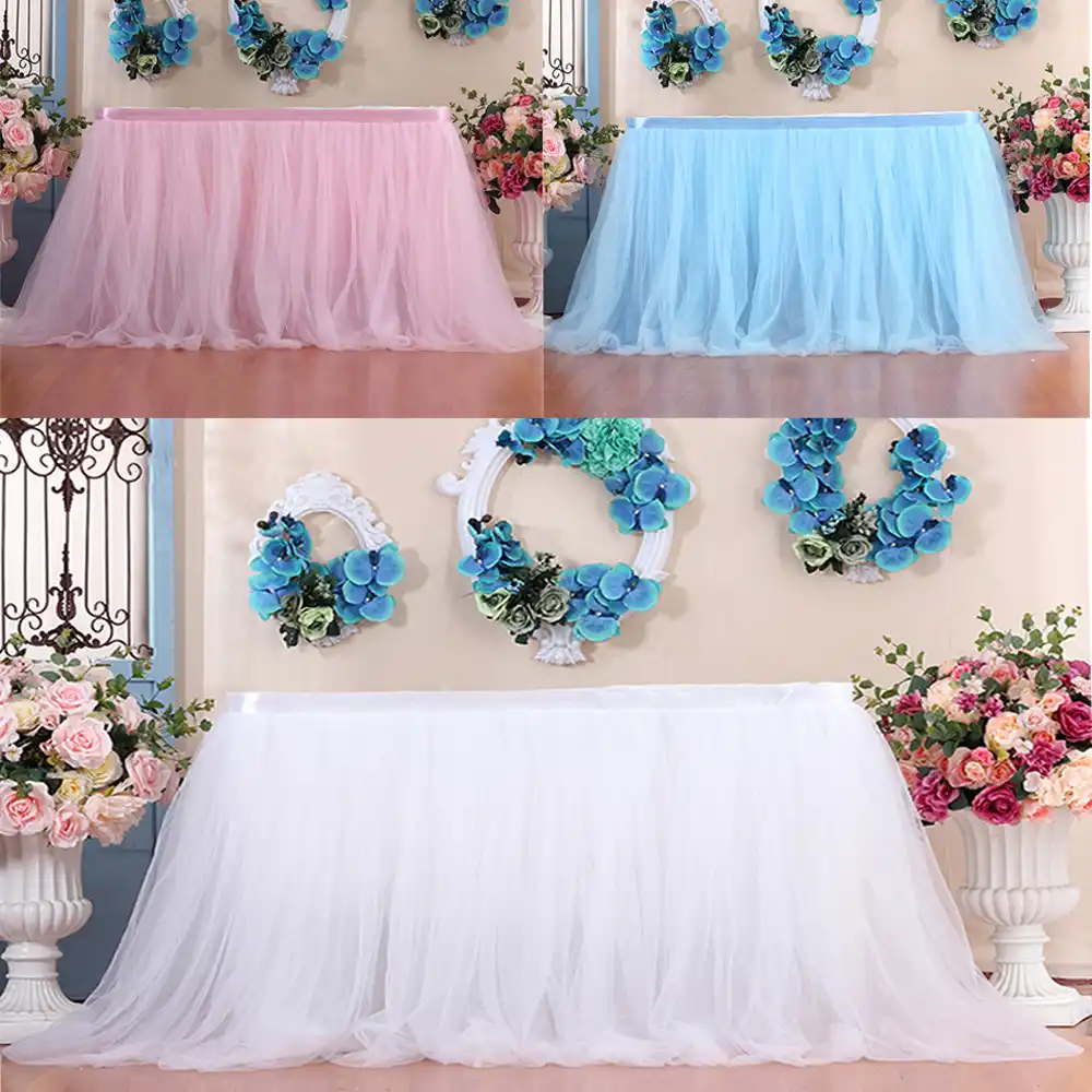 1pc mesa saia utensílios de mesa pano casamento tutu tule mesa saia chá de fraldas festa de aniversário decoração da sua casa rodapé 29|Saias de mesa| - AliExpress mesa de festa com tule