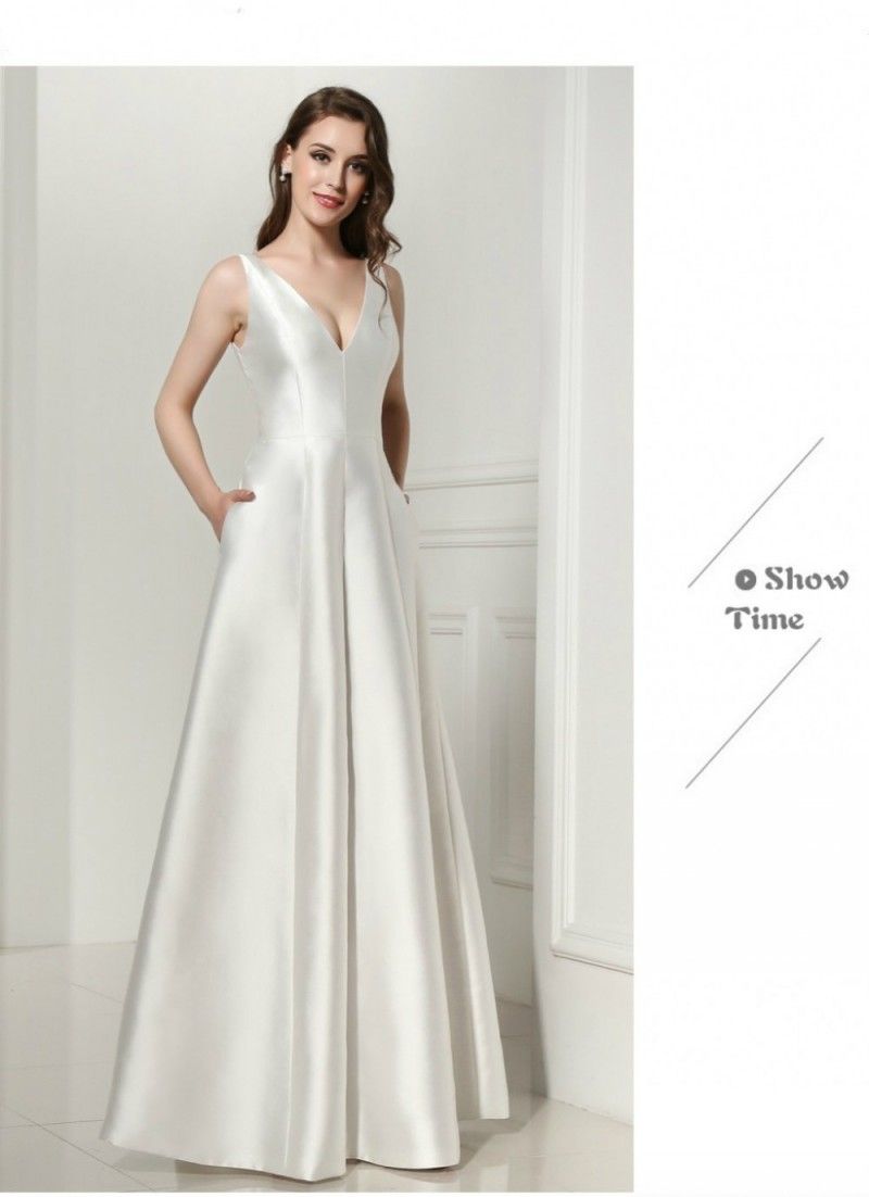 Vestidos Para Festa De Casamento Prom Dresses 2017 Fancy Dress Branco Gala Vestido A Linha Simples E Elegante Vestido De Baile V Neck Puffy Cetim Partido Baratos Para Meninas Nova Roupas Para vestido branco de gala