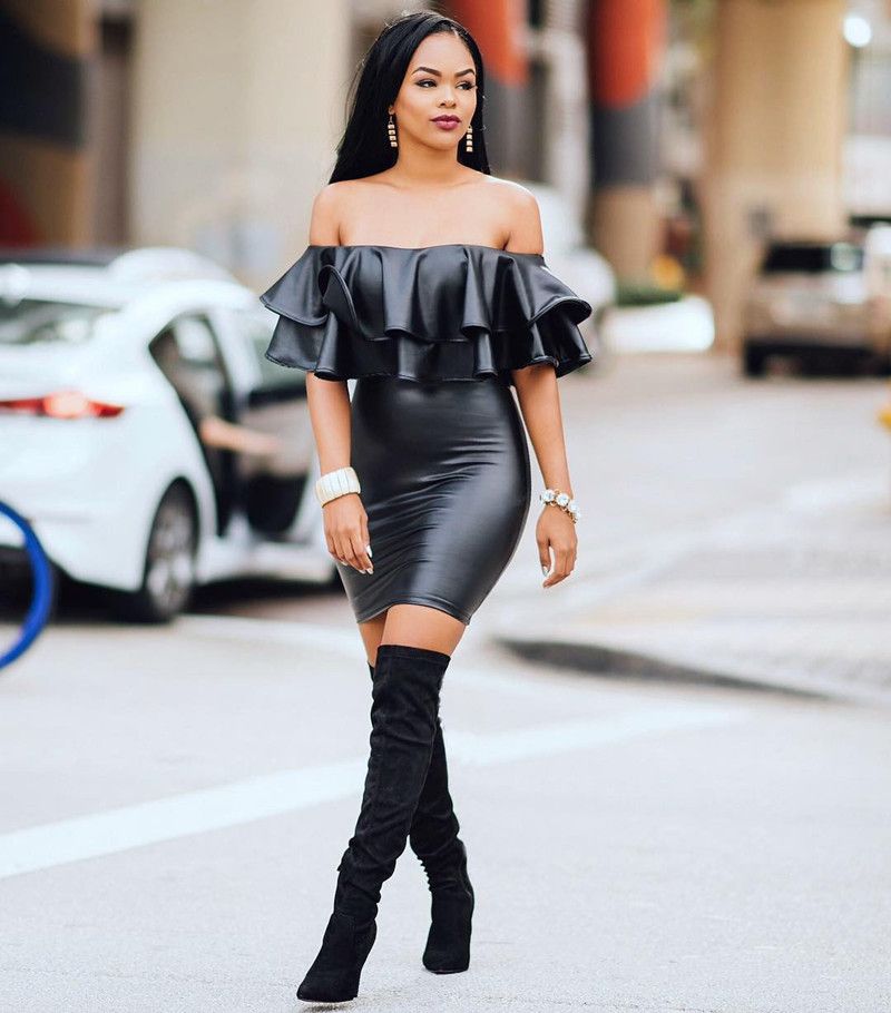 Compre Senhoras Sexy imitação De Couro Duplo Vestido De Babados Venda Quente Vestido De Verão De Ifashionshop, $93,34 | Pt.Dhgate.Com vestido imitando couro