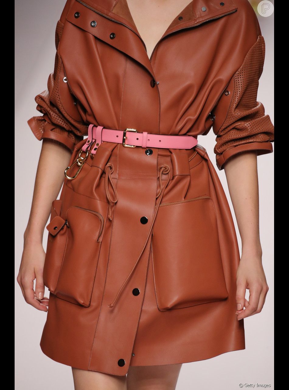 A Fendi também apostou no vestido de couro em tom terroso, puxado para o caramelo, para um look de verão mais chique - Purepeople vestido de couro caramelo