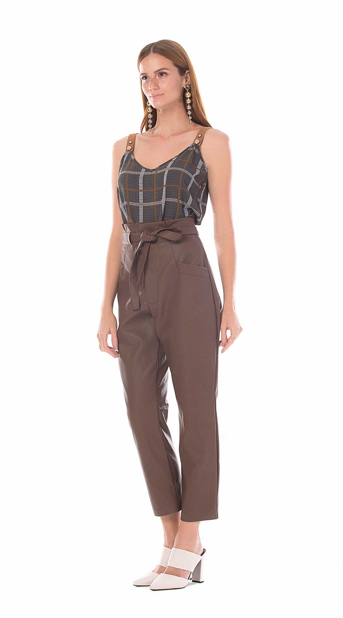 Calca Clochard Cos Alto Com Amarracao Marrom - Maria Valentina
