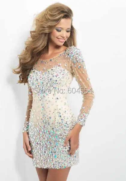 Vestido de festa curto custom made luz champagne tulle de cristal brilhante beading manga comprida sexy mini curto cocktail dress|dress surf|dress up a black dressdress pvc - AliExpress vestido de festa curto brilhante