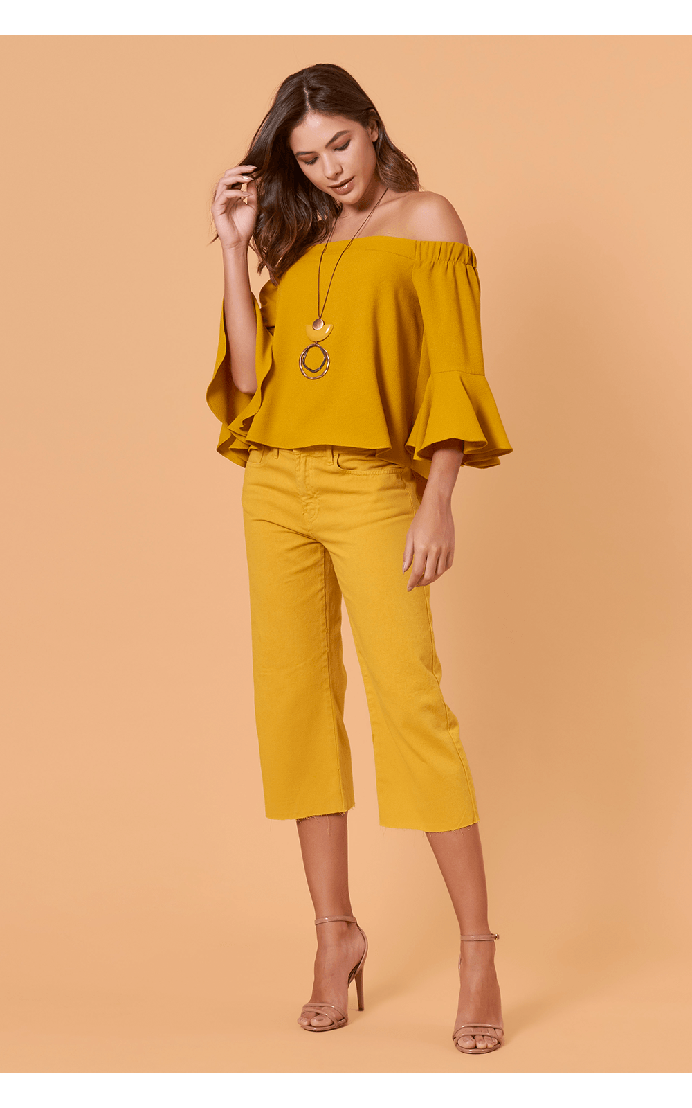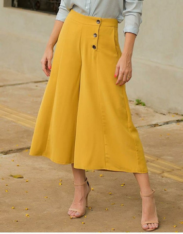 calça pantacourt mostarda