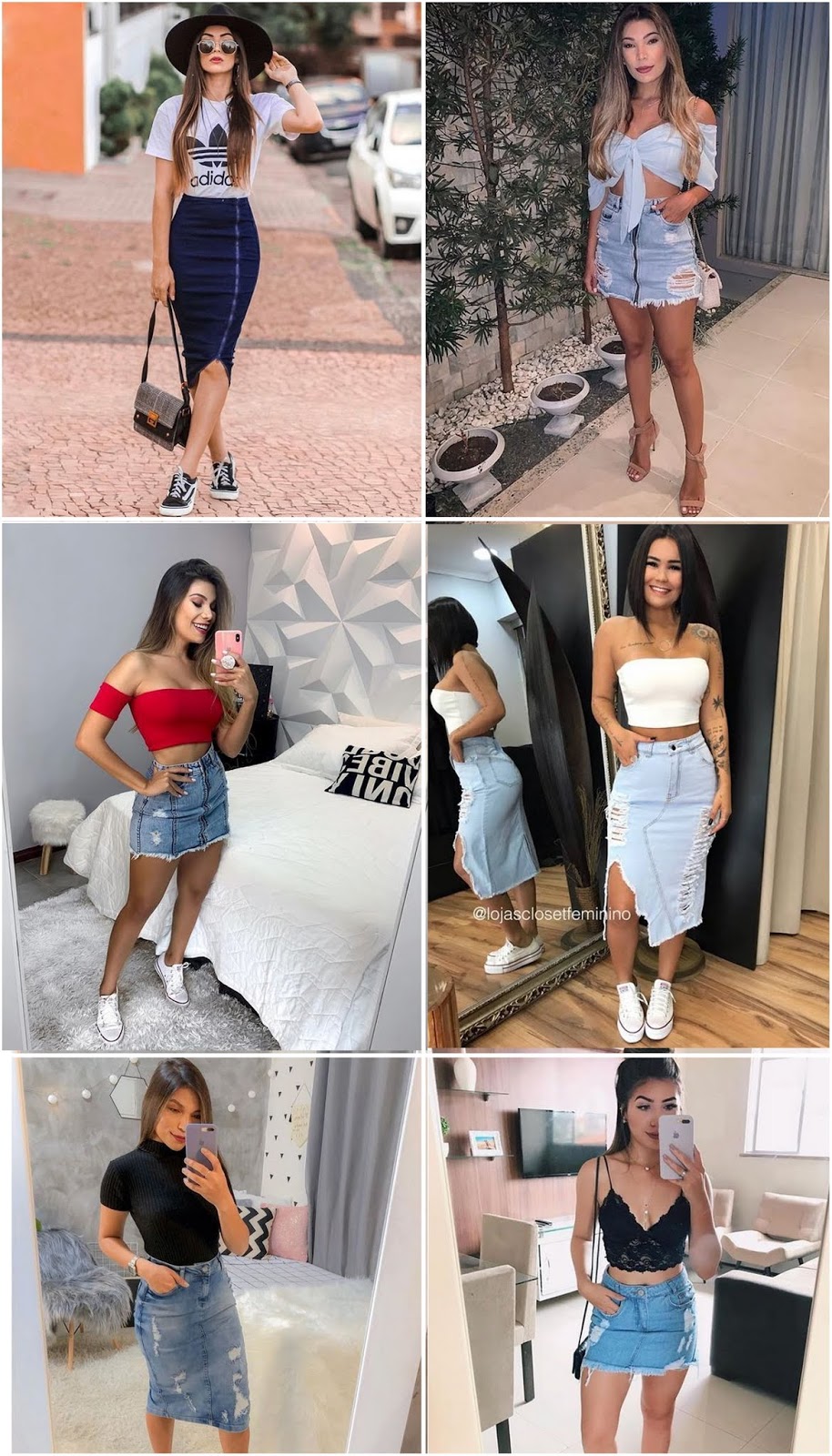 Saia Jeans: Inspirações e dicas de looks com saia jeans | Mundo Das Mulheres Brasil saia curta na frente e longa atrás jeans