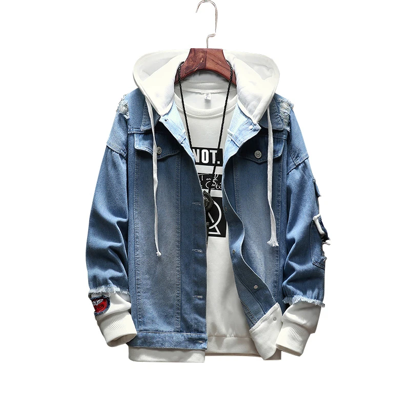 2019 primavera e outono nova jaqueta jeans masculina, tendência personalidade costura falso bordado de duas peças casual com capuz jaqueta masculina|Jaquetas| - AliExpress jaqueta tendencia 2019