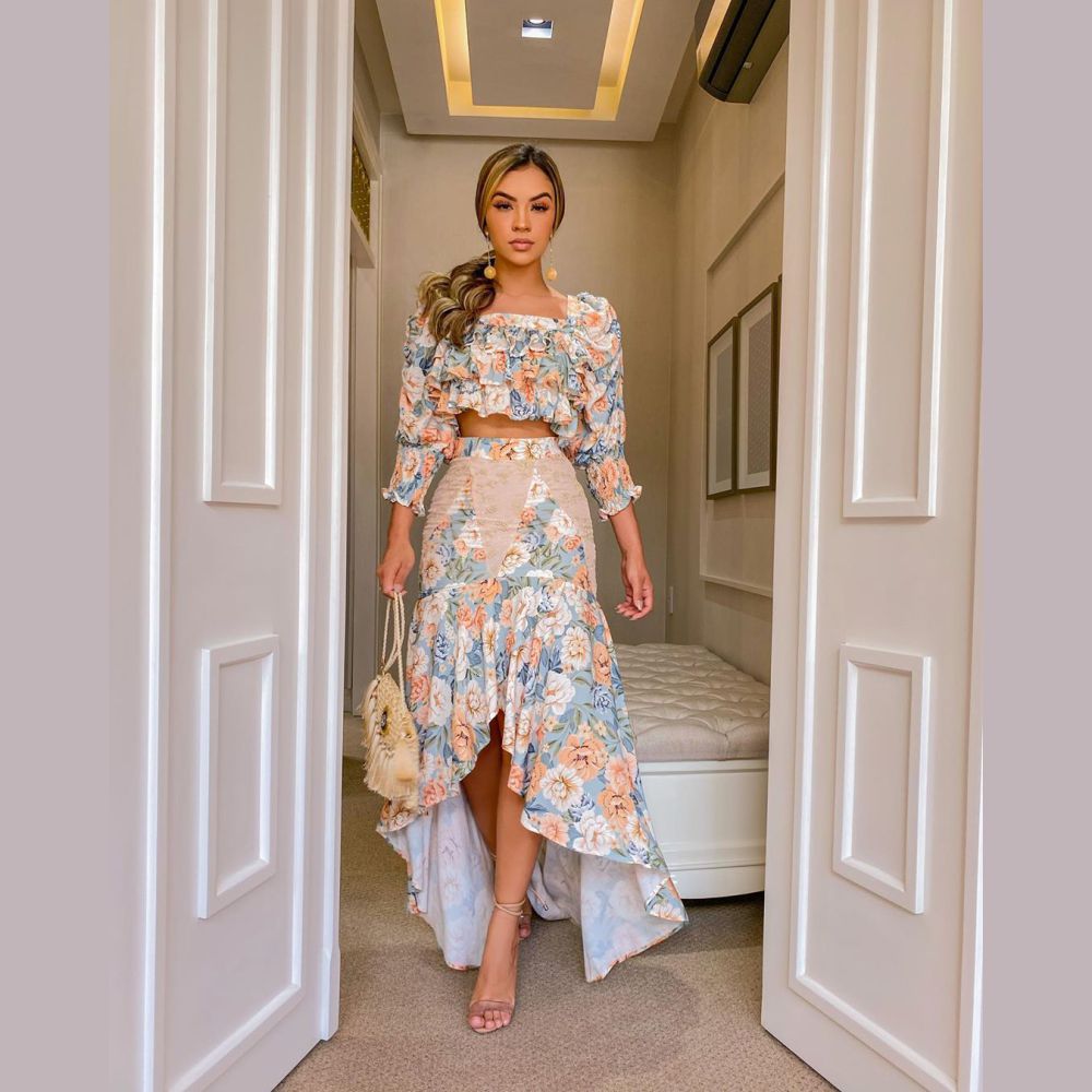 Saia mullet estamp floral - Ouzze Moda Feminina saia mullet