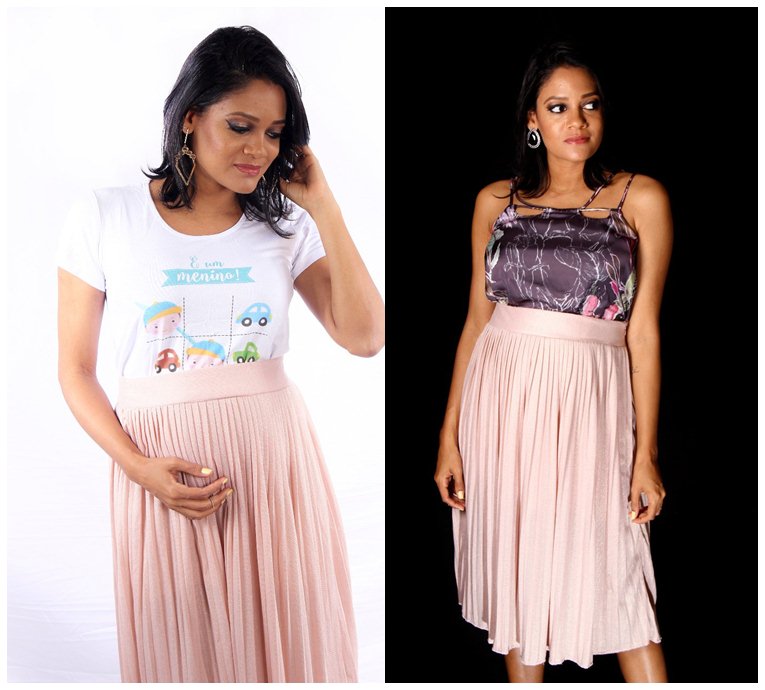 Look Gestante | Look para gravidas, Gestante, Inspiração de look saia plissada para gravida