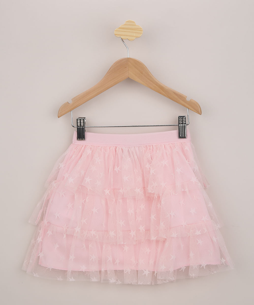 Saia de Tule Infantil Estampada de Estrelas em Camadas Rosa - cea saia de tule infantil dourada