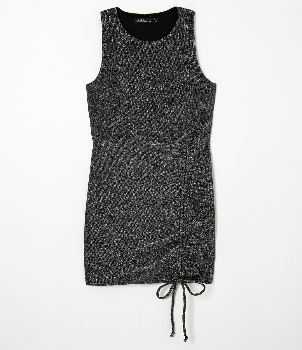 Vestido Metalizado com Detalhe Franzido Preto vestido metalizado renner