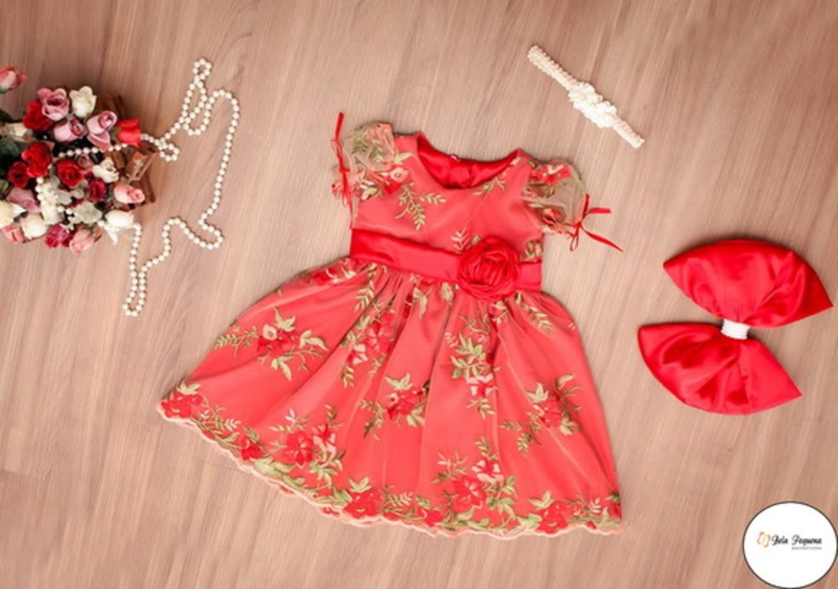 Vestido Infantil Tule Bordado Vermelho | Roupa Infantil para Menina Bela Pequena Nunca Usado 27411335 | enjoei vestido tule bordado infantil