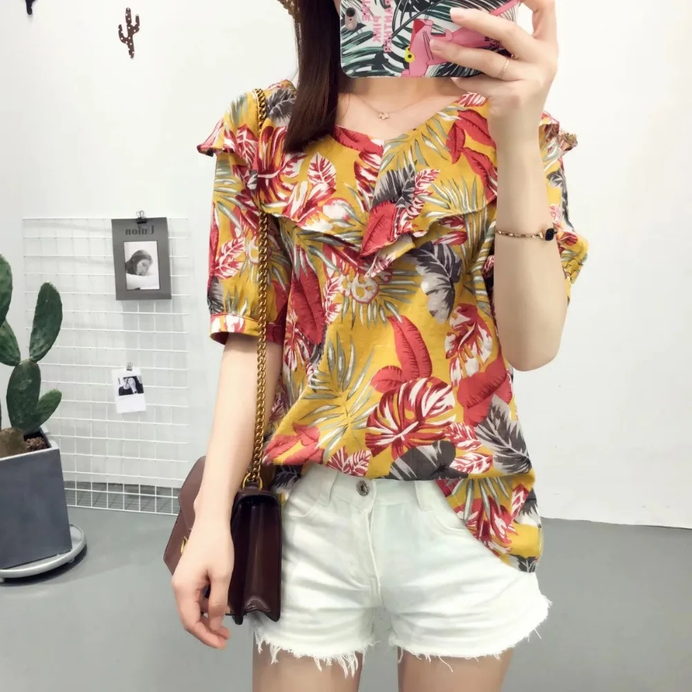 2017 Moda estilo Tropical V Neck Ruffles Mulheres Camisas Florais imprimir Manga Curta Casual Solto Lady Trabalho Verão Tops Blusas Femm|summer tops| blusas fashionwomen fashion shirt - AliExpress blusas estilo tropical