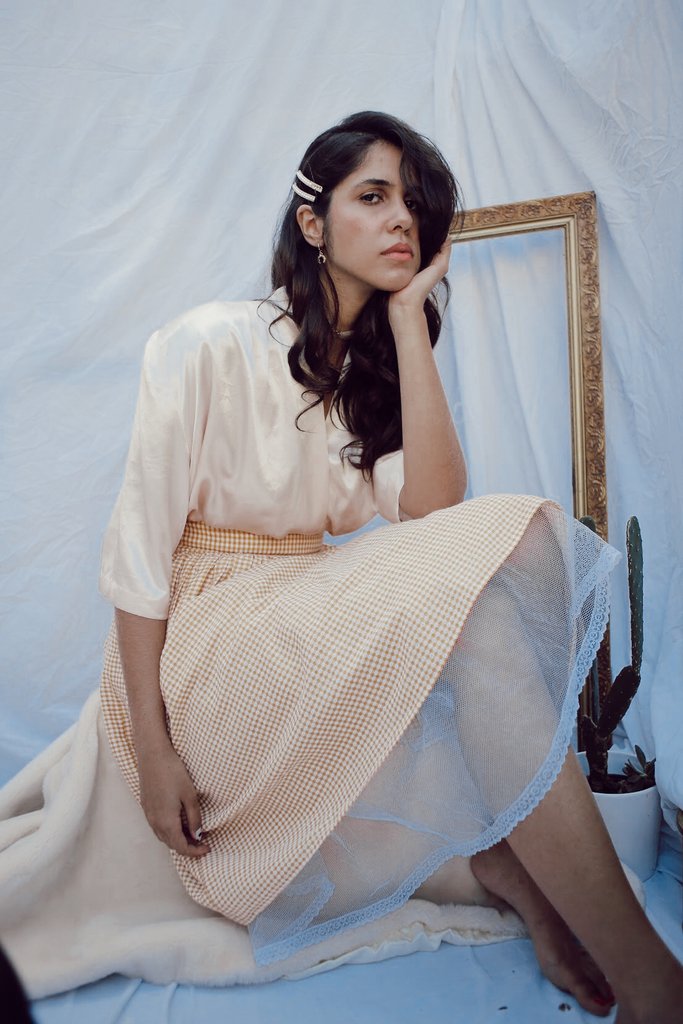Saia midi xadrez forro de tule renda estruturada M saia midi estruturada