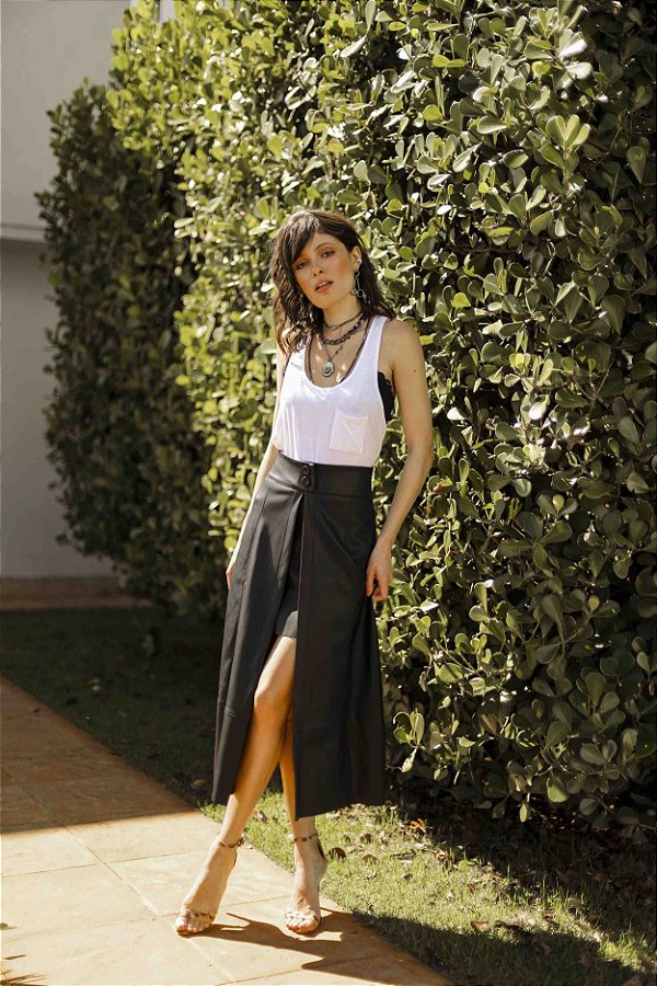 Saia midi de couro eco - AffeMaria Moda Feminina saia midi com abertura