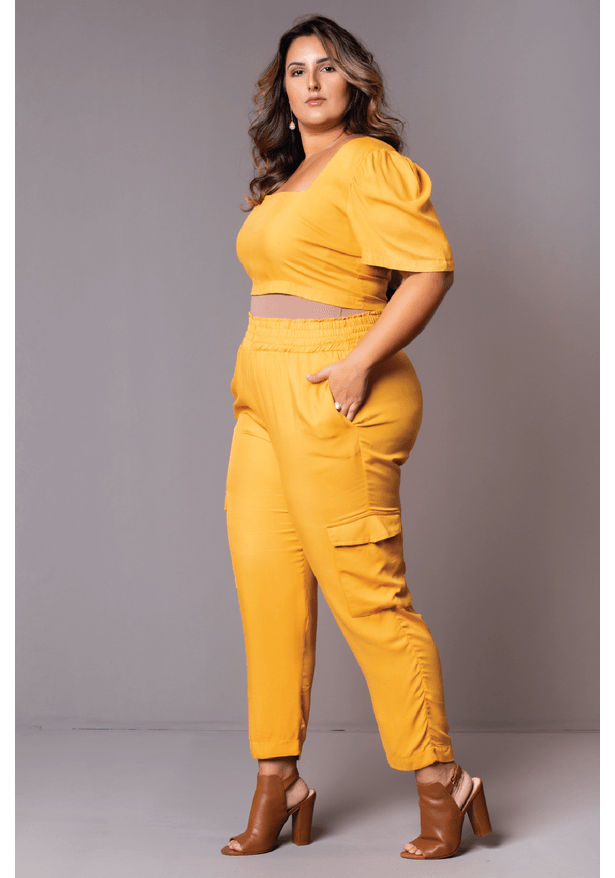 Conjunto Cropped Calça Inverso Plus Size - Chic e Elegante conjunto de calça e blusa plus size