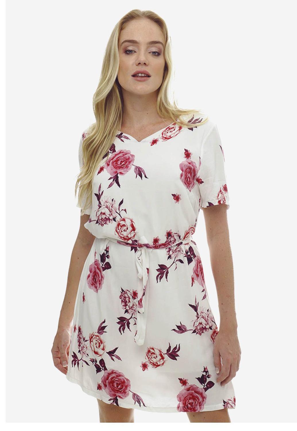 Vestido Feminino Curto Evasê Estampado Floral Sem Manga Branco - cea vestido branco floral curto